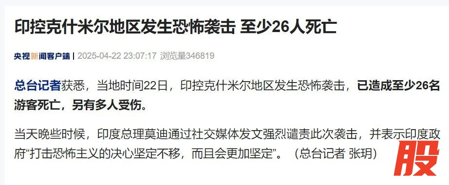 总台记者获悉,当地时间22日维度配资,印控克什米尔地区发生恐怖袭击,已造成至少26名游客死亡,另有多人受伤。