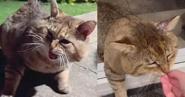 这只公猫外表英俊而强壮,但身上布满了伤痕,显然流浪的生活让它饱经风霜。当女子取出食物递给它时,它迅速上前抢食,随后便退到远处,保持着安全的距离。它不允许其他猫咪靠近,也不容许女子接近,一旦有人试图靠近,它便发出低沉的嘶鸣声,仿佛在宣告自己的领地。这种行为并非出于恶意,而是流浪岁月铸就的自我保护机制。在野外生存的猫咪常常需要通过这种方式来防范潜在威胁,以确保自身的安全。